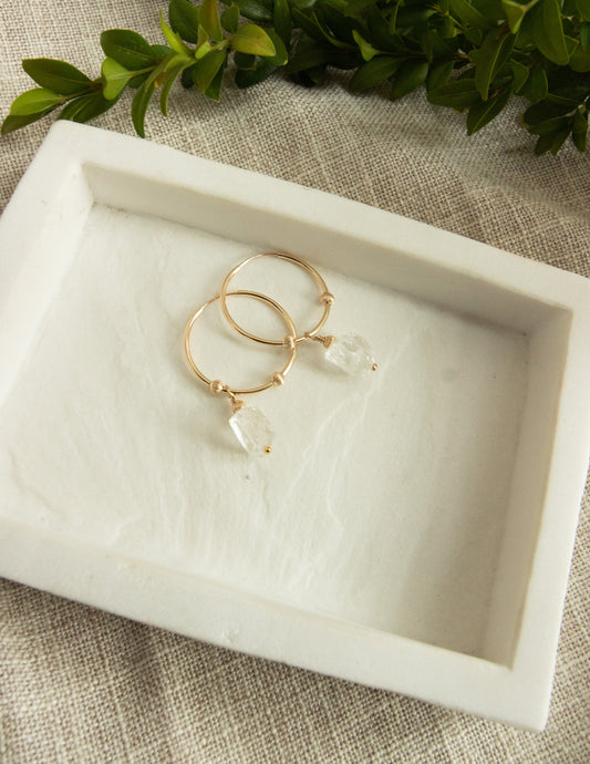 Clear Quartz crystal gold filled hoops