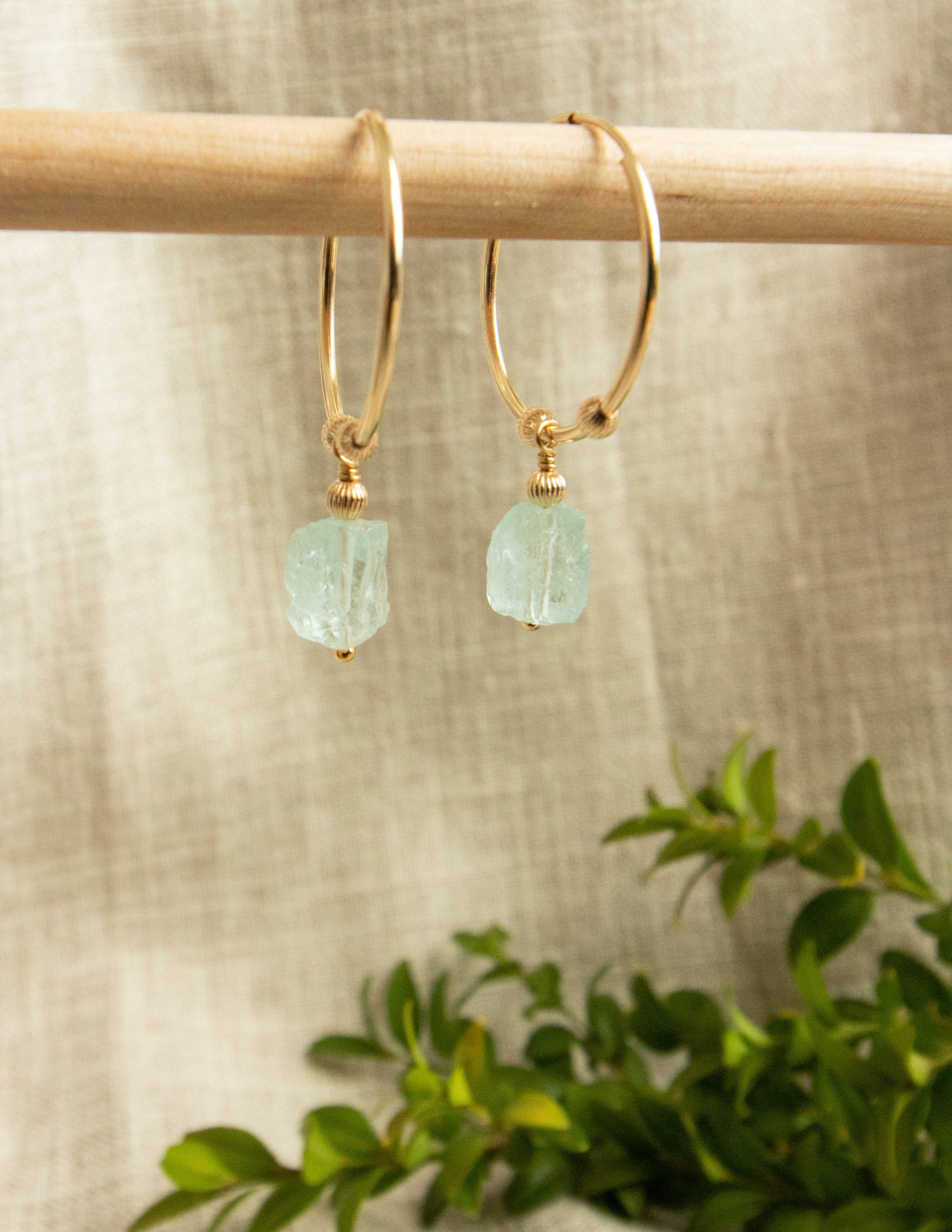 These absolute gorgeous bohemian style 14k Gold filled sleeper hoops with stunning raw Aquamarine crystals are just a must have!