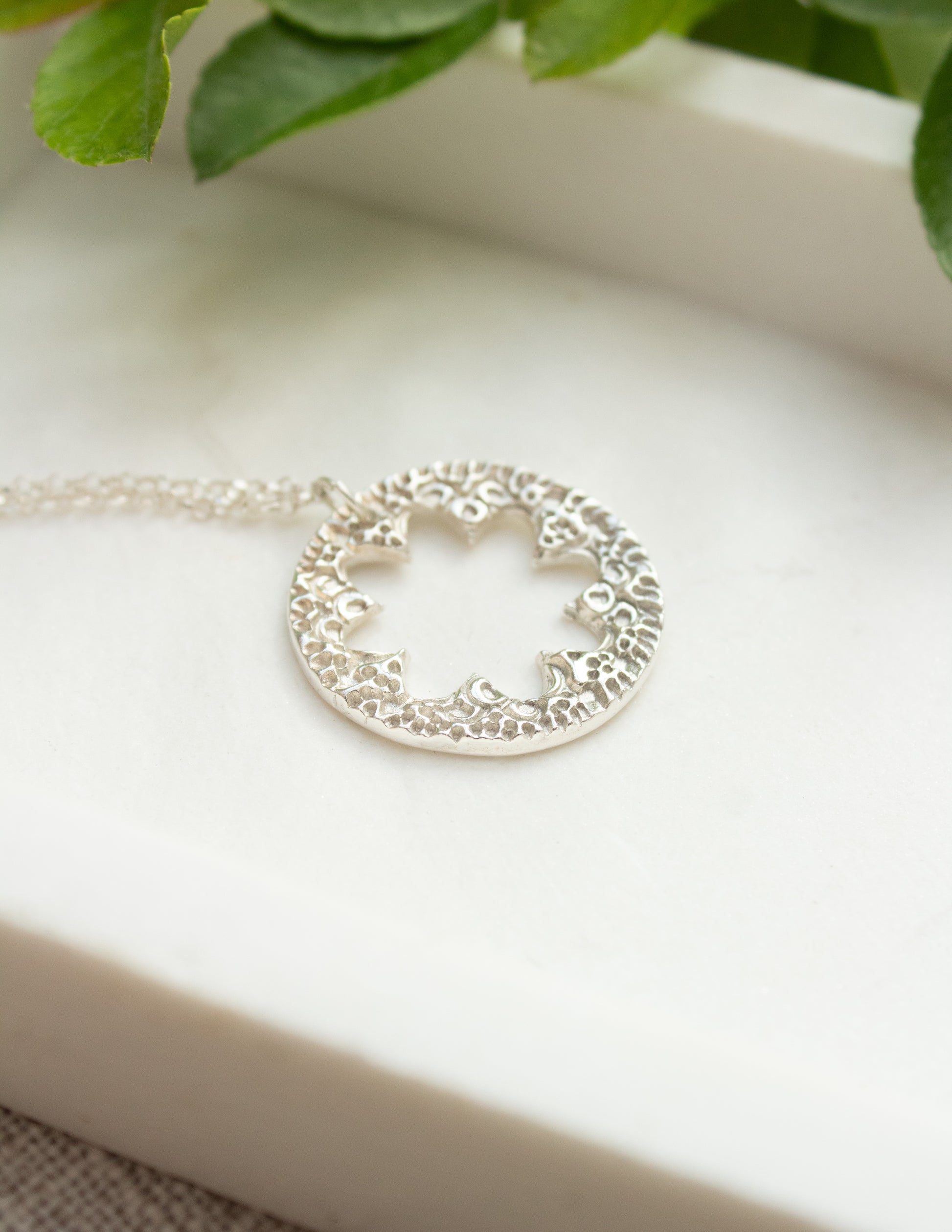 The Daisy coin is beaming with detail it just wants to be worn and shown off to everyone. With the Daisy cut out from the centre it makes it a versatile necklace to wear with the rest of the daisy collection if you was looking to layer up your look.