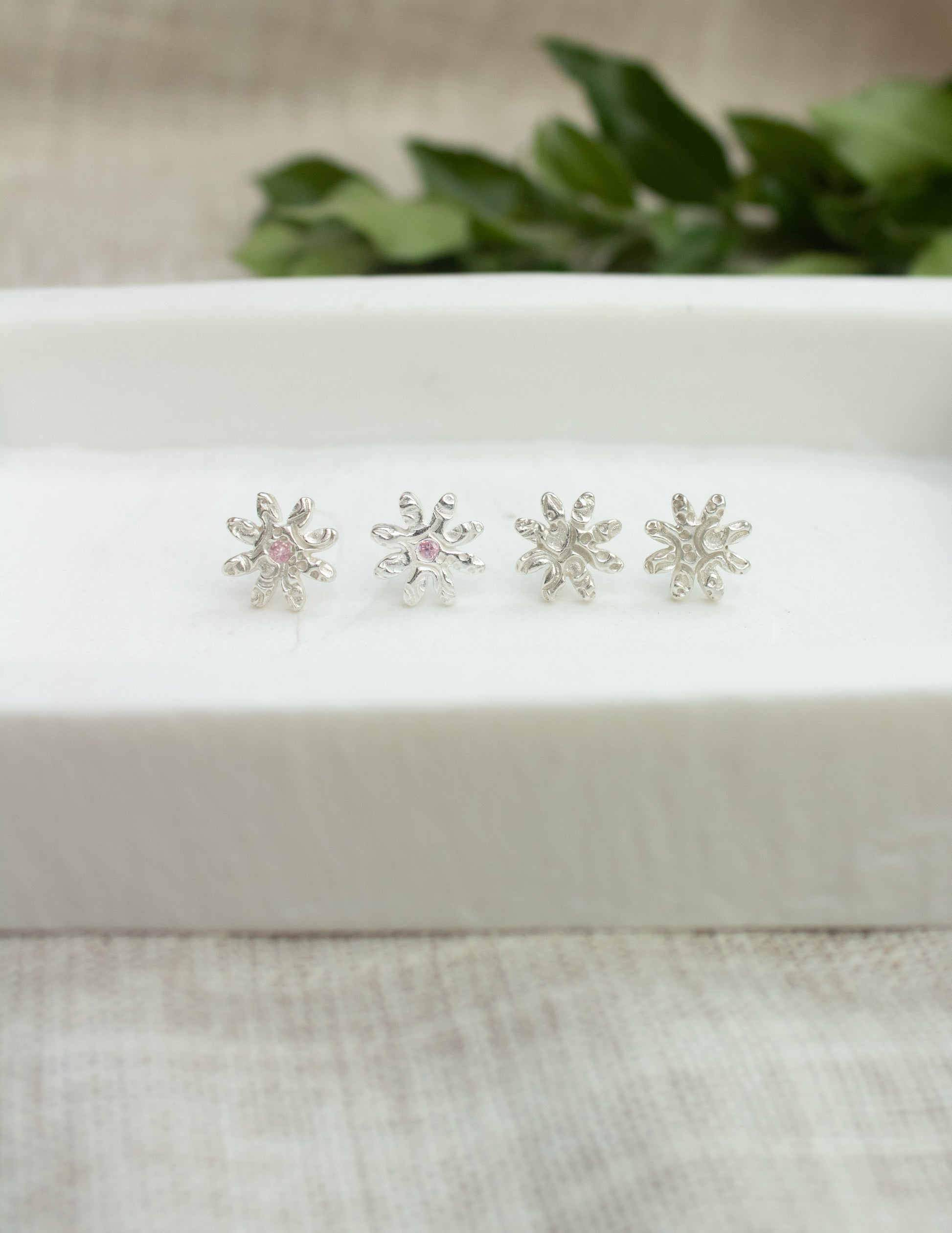 Our new Daisy stud earrings are sure to become an instant favourite of yours. Dainty, stylish and a perfect pair of sterling silver studs to style everyday. Each stud is handmade from scratch and has a detailed design imprinted in to each earring which gives them a stunning boho vibe. You also have the choice of choosing a different colour 2mm cubic zirconia stone to be place in the centre of each earring or just leave them the plain the choice is yours.