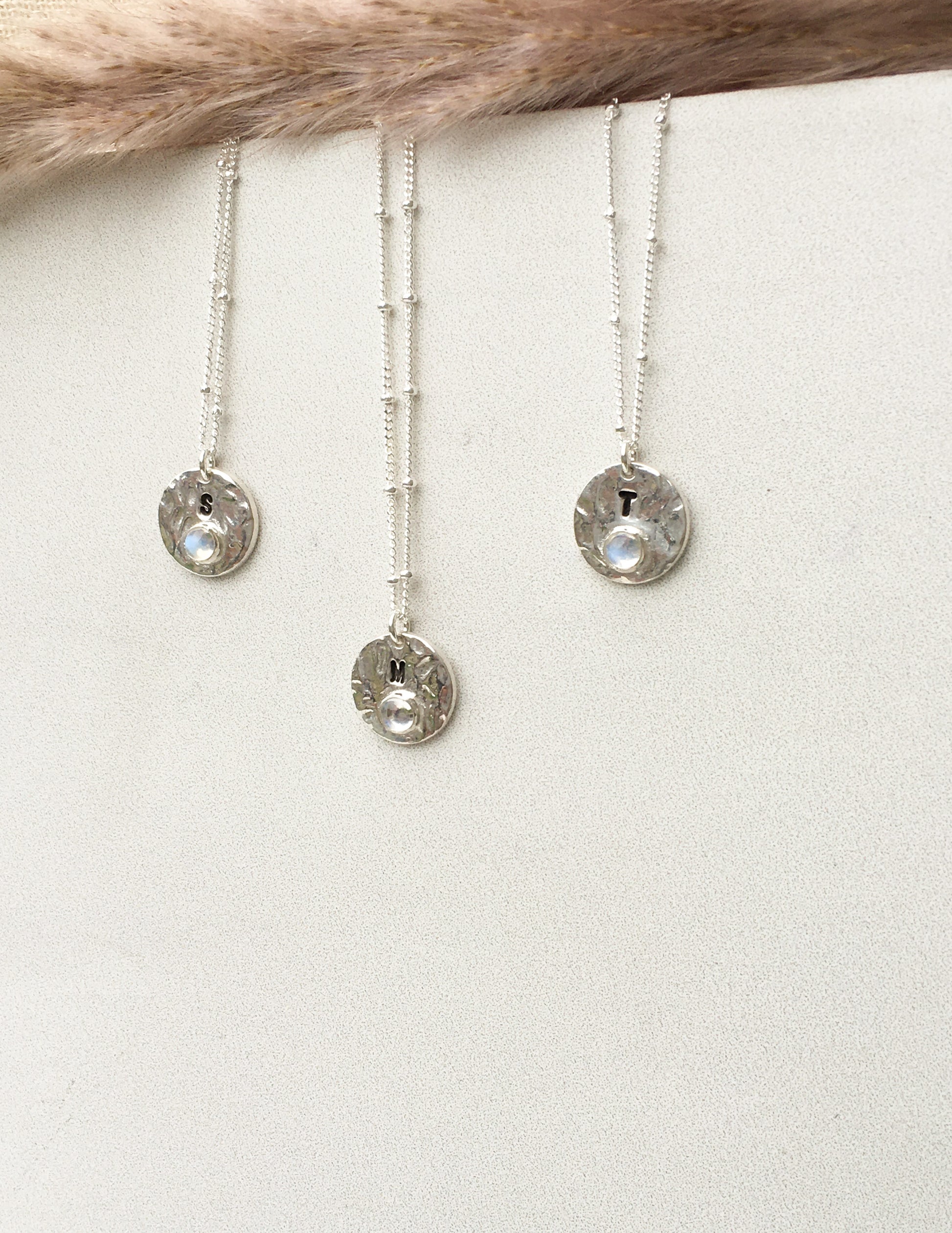 We've got just the thing. This initial necklace features a stunning 4mm moonstone set in a textured coin pendant on an elegant adjustable satellite chain. It's a gift that will make them feel special and appreciated—and it's something they'll love for years to come.