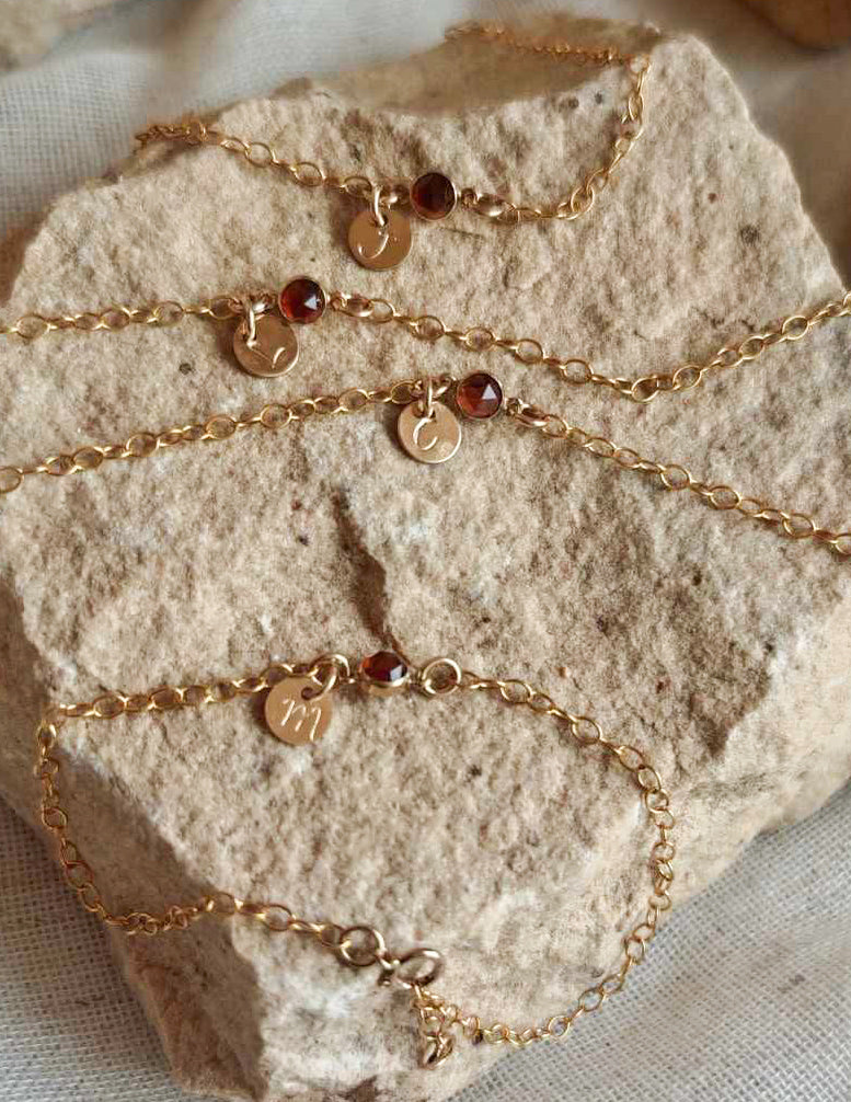 Show the one you love that they are truly your heart by gifting them this beautiful, personalised bracelet. A simple cable chain with a ruby red garnet to symbolise their heart, with a initial and heart tag. A simple gesture to express your love this Valentine’s Day.