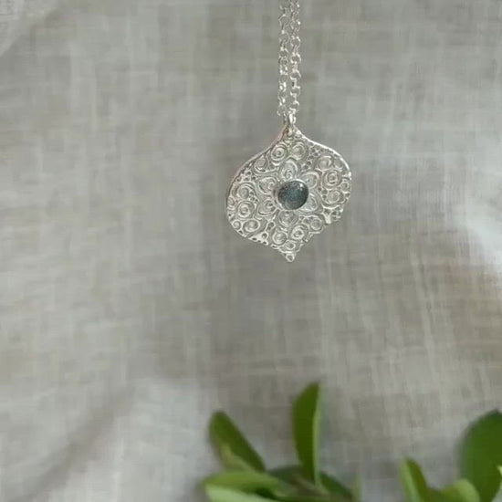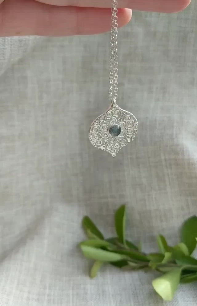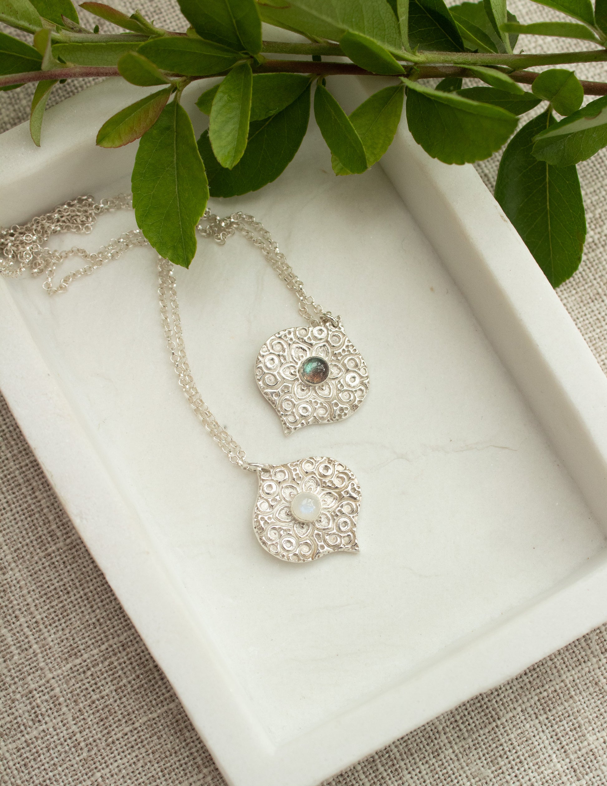 The Ogee gemstone pendants are truly stunning! With its beautiful curved shaped edges and pretty floral base the Moonstone and labradorite gems sit perfectly in the centre of the pendant which just gives it that little extra glow.