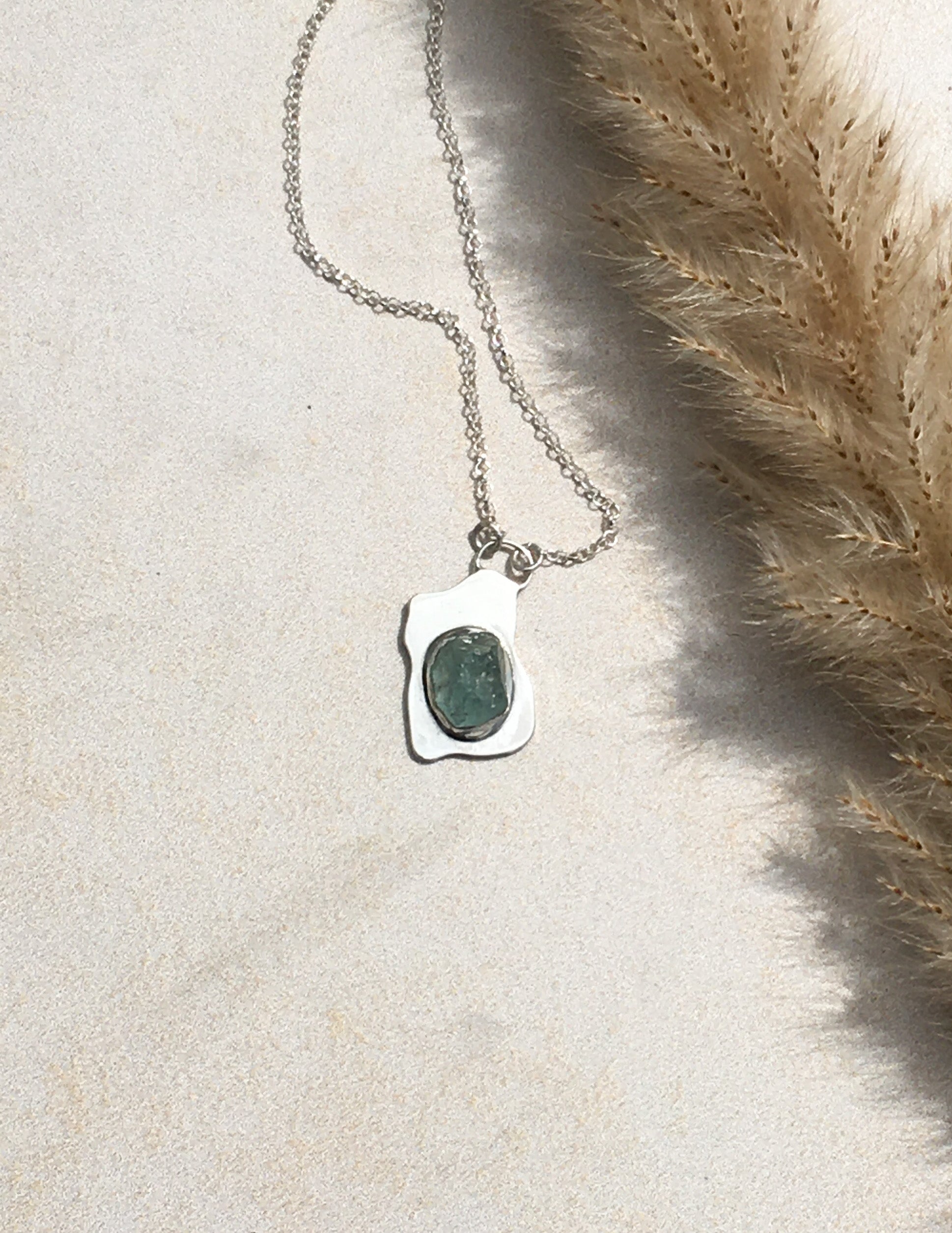 This gorgeous Aquamarine crystal necklace is a bespoke one of a kind piece that celebrates your unique style. The organic shape of the crystal gives it a modern edge and beautiful texture that adds shine to any outfit whether your a man or a women It's a great way to play up your look on a day out, vacation or a night on the town.