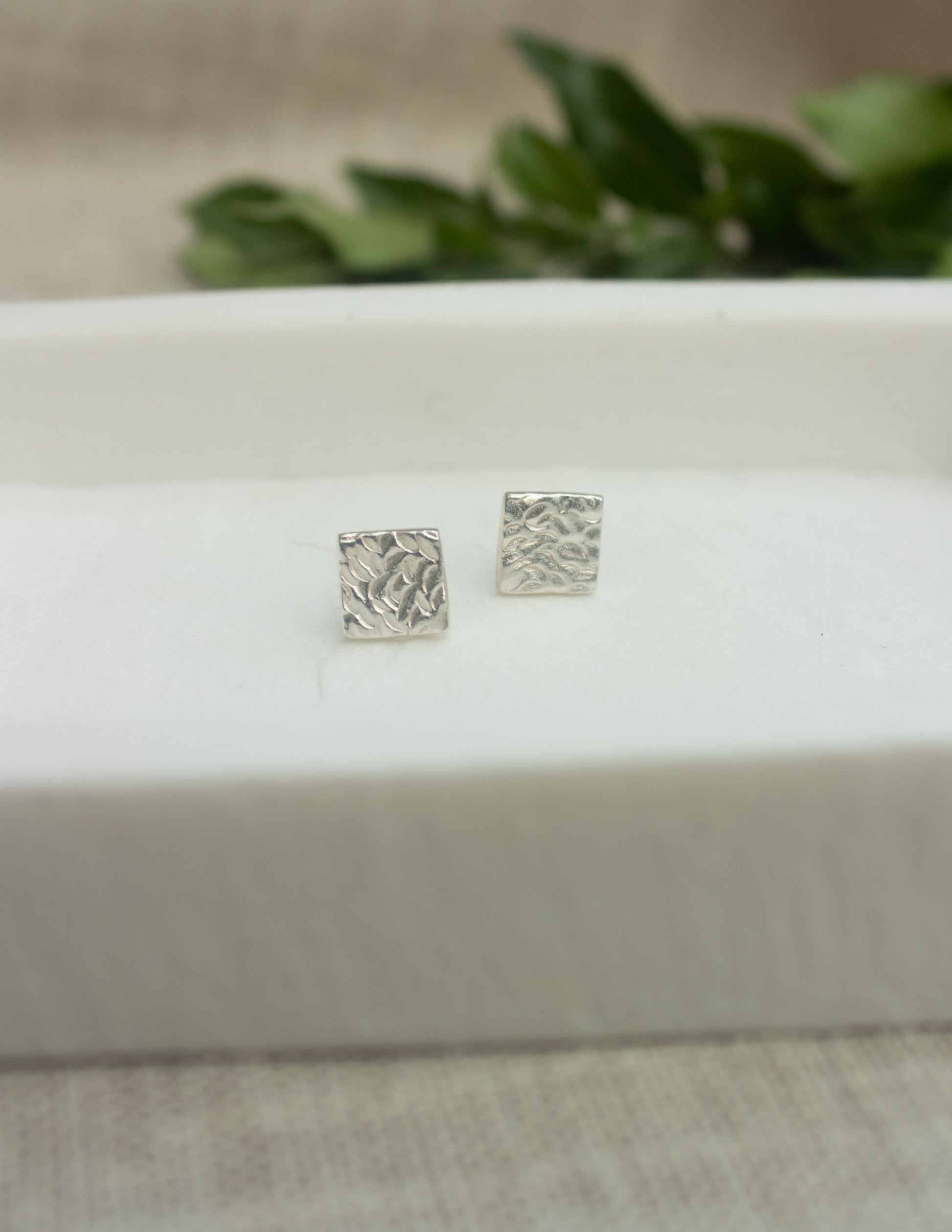 Stud earrings make all the difference to your everyday look. Our slice hammered circle and square stud earrings make a great choice. These earrings have a minimalist and simple hammered effect that plays around with the light to give them a beautiful shimmer and shine. These studs are light and comfortable to wear.