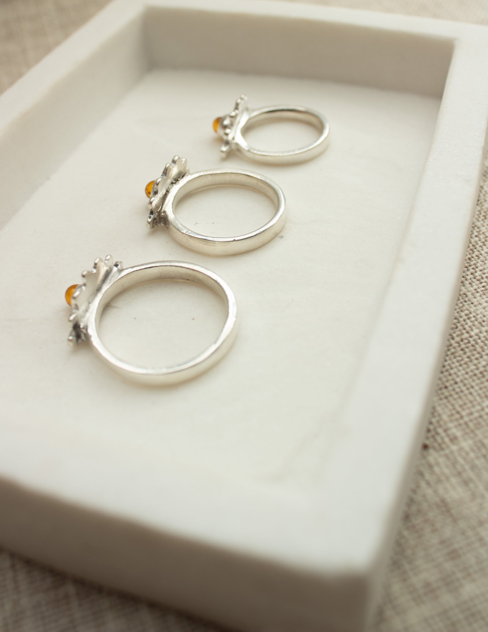 This Saint Lucia Amber ring is beaming with beautiful sunshine’s and positivity. With the organic half sunny mountain cradling the centre Amber stone it radiates joy and happiness.